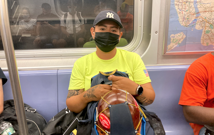 Viajaba en un asiento vacante del tren E que recorre Queens y el bajo Manhattan. Vestía una camisa verde fosforescente, además de una gorra de los Yankees, insignia de la ciudad de Nueva York. Cargando dos mochilas y un casco protector, Blanca Martínez, de 39 años, lucía agotada después de una ardua jornada de trabajo en la construcción.