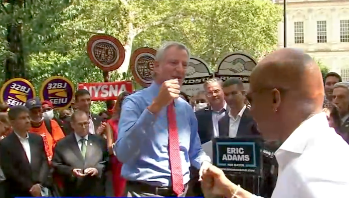 El alcalde Bill de Blasio apoyó a Eric Adams para convertirse en alcalde en las elecciones generales del próximo noviembre. “Creo en Eric y no cabe duda que enfrentará grandes desafíos”, dijo de Blasio frente a la alcaldía de Nueva York. “Ya le dije que mi equipo le dará todo lo necesario para enfrentar estos retos”.