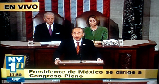 “Vamos a ganar la batalla, pero no es fácil”, dijo el presidente mexicano Felipe Calderón ante el Congreso de los Estados Unidos el jueves 20 de mayo en la mañana. El presidente Calderón se refería al tráfico de drogas que está derramando sangre en territorio mexicano. “Estamos golpeando duro a los narcotraficantes y hemos extraditado a muchos mexicanos a esta nación, algo sin precedentes”.