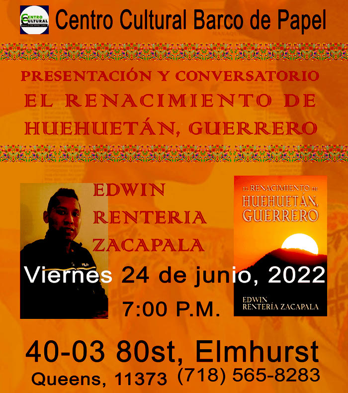 El primer censo de población afro descendientes o afro mexicanos  en México se realizó  en el 2020. Después de dos siglos es la primera vez que se incluye a esta población dentro de esta medición.Difundir la historia en nuestra comunidad, mostrar su herencia y el reconocimiento de las poblaciones afro descendientes es lo que  buscan las nuevas generaciones como la de  Edwin Rentería con su libro, en este viaje desde Guerrero a New York.El Centro Cultural Barco de Papel, ubicado  en el 40-03 80st, Elmhurst, Queens, 11373.