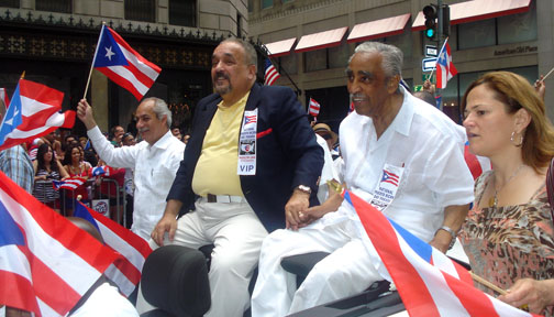 El Congresista Charles B. Rangel se subió a un carro al comienzo del desfile con el salsero Willie Colón y desde allí los dos saludaban a la gente acompañados de la concejal Melissa Mark-Viverito y el Asambleísta Guillermo Linares. Rangel tiene ascendencia puertorriqueña y se está jugando la reelección en su distrito contra Adriano Espaillat, quien anhela ser el primer dominicano electo pare representar a su comunidad en el Congreso.