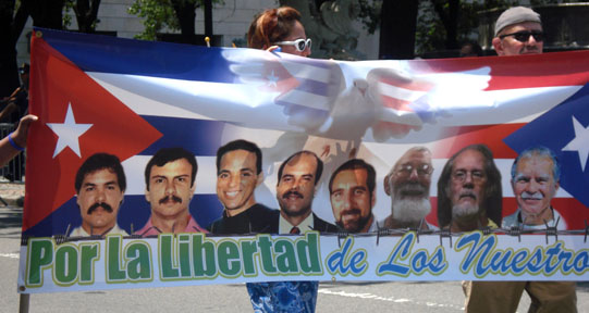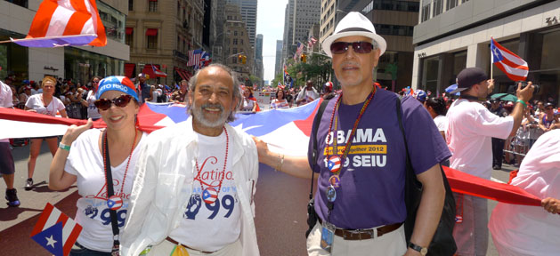 Representantes del sindicato 1199 de la SEIU también desfilaron en defensa del 99% de la población, en alusión al movimiento Occupy Wall Street y halando una inmensa bandera puertorriqueña que ocupaba casi toda la calle.