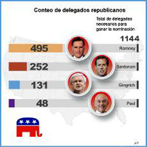Las primarias del Partido Republicano trasladan su atención este fin de semana al estado de Missouri donde el sábado 17 de marzo de 2012 se llevan a cabo las Asambleas (Caucus) partidarias, en tanto el domingo 18 se realizarán las asambleas en Puerto Rico.