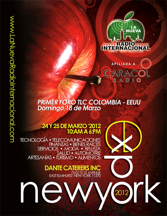 La Nueva Radio Internacional afiliada a Caracol, los invita a la sexta versión de “EXPO NEW YORK 2012”, un evento que promueve el mercado hispano en los EEUU, finanzas, tecnología, telecomunicaciones, alimentos, turismo, moda, belleza, artesanías. Será el próximo 24 y 25 de marzo. Y el 18 de marzo será el primer foro sobre el TLC entre Colombia y los Estados Unidos.