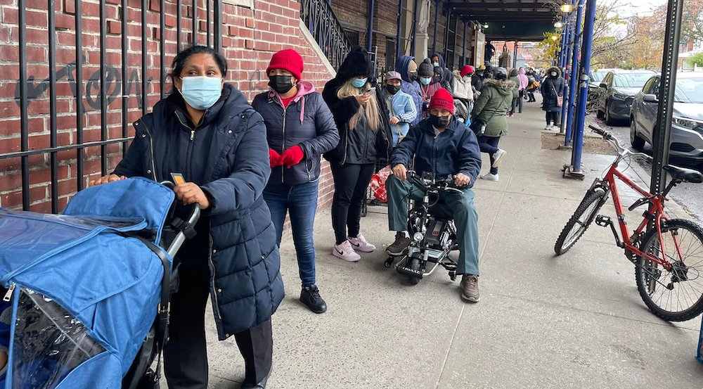 Cientos de personas, en su mayoría latinos, se acercaron a la iglesia Nuestra Señora de los Dolores de Corona, Queens a recibir su pavo. Fotos cortesía