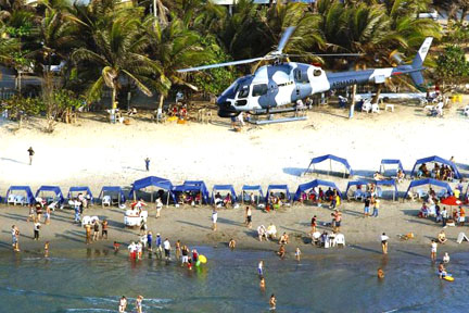 La seguridad en Cartagena es por agua, tierra y aire, como lo demuestra este helicóptero militar sobrevolando las playas de la Ciudad Heróica.