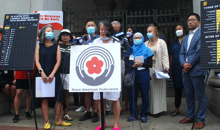 La organización Asian American Federation realizó una conferencia de prensa con políticos locales del estado y la ciudad de Nueva York para alertar a la comunidad y buscar fondos.