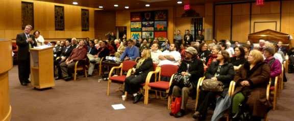 Un poco más de 100 personas asistieron al evento en el Centro Judío de la calle 77 de Jackson Heights. Comenzó con un video que mostró los logros del concejal Droom en año y medio después de haber sido elegido. Pocos latinos acudieron al evento y fue notoria la presencia de representantes de agencias comunales sin ánimo de lucro.