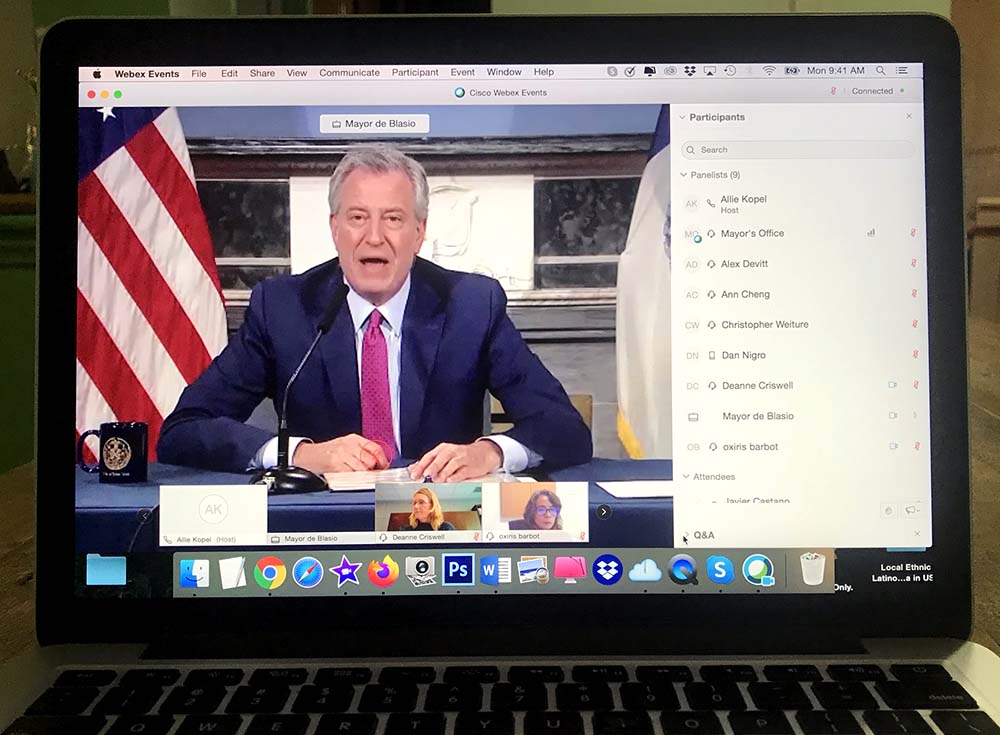 La primera autoridad de la ciudad dijo que la situación está mejorando porque están bajando las hospitalizaciones por Coronavirus y que la reapertura de la economía debe hacerse paulatinamente. Canceló todos los eventos públicos de mes de junio, incluyendo el Desfile Nacional Puertorriqueño y el Desfile del Orgullo Gay.
