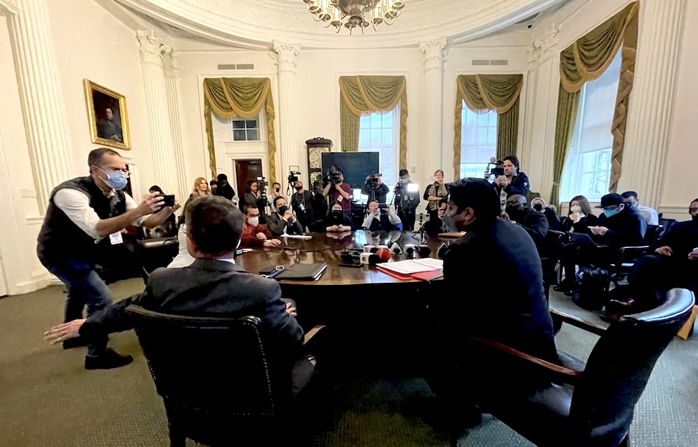 El comisionado Vasan comenzó exaltando la labor informativa de los medios locales e hizo énfasis en que “la pandemia no se ha ido”. Ante la pregunta por qué decidió vestir tapabocas en esta reunión, su respuesta fue: “Así me siento más seguro, no conozco la situación de salud de los asistentes y no quiero llevar el virus a mis tres hijos o al resto de i familia”.