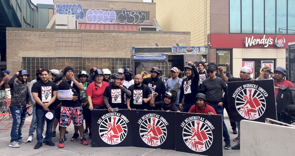 Los Deliveristas Unidos y representantes del Centro de Justicia del Trabajador se reunieron en la intersección de las avenidas Roosevelt y Broadway, a una cuadra de NICE. “Estamos entusiasmados de poder trabajar con DoorDash”, dijo Nilbia Coyote, directora ejecutiva de NICE.