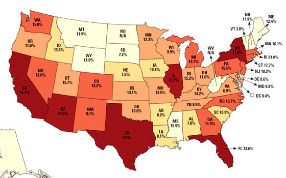 Frente a los aumentos en octubre de 2011 de puestos en el sector de servicios profesionales y de negocios (32 mil empleos), en el de hoteles, restaurantes y entretenimiento (22 mil), y salud (12 mil), la construcción sufrió una pérdida de 20 mil, la mayor desde enero.