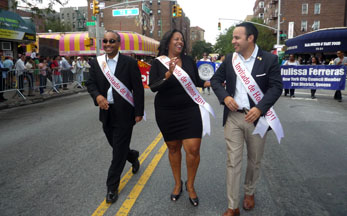 Como viejos amigos también desfilaron los tres políticos demócratas de la zona: el senador José Peralta, el asambleísta Francisco Moya y la concejal Julissa Ferreras. Se abrazaron al comienzo del desfile e hicieron el recorrido saludando al público y hablando de la unión de los latinos en Queens.