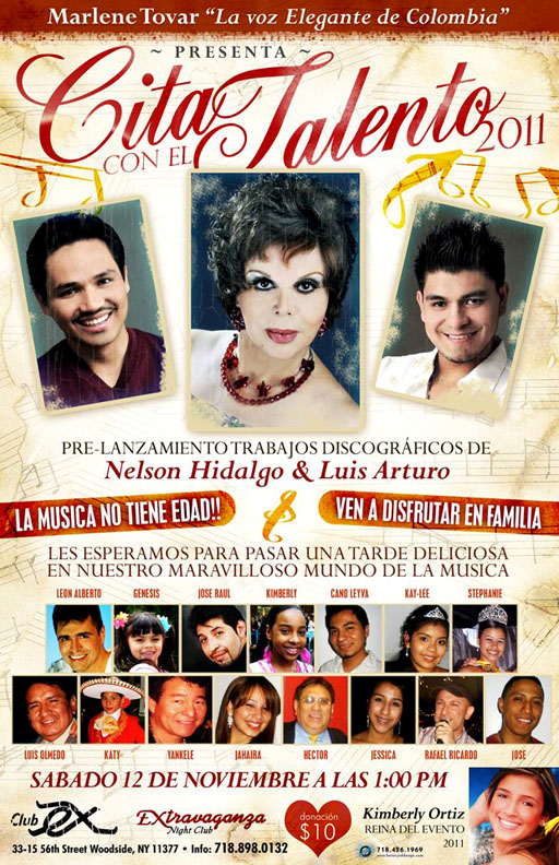 En el Club Extravaganza de Woodside, Queens, se realiza este sábado 12 de noviembre un desfile de artistas a partir de la 1 de la tarde. Son cantantes nuevos que han recibido clases con la artista Marlene Tovar, conocida como La voz elegante de Colombia.