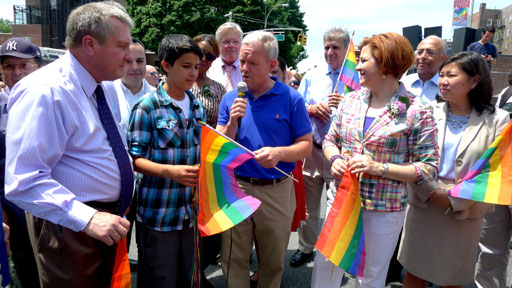El concejal Daniel Dromm de Jackson Heights, quien es abiertamente gay y uno de los fundadores del Desfile Gay de Queens hace 20 años, dijo que “este evento ha crecido mucho y hoy tenemos como Gran Mariscal a la familia de Julio Rivera, cuyo asesinato en Jackson Heights motivó la realización de este desfile”.