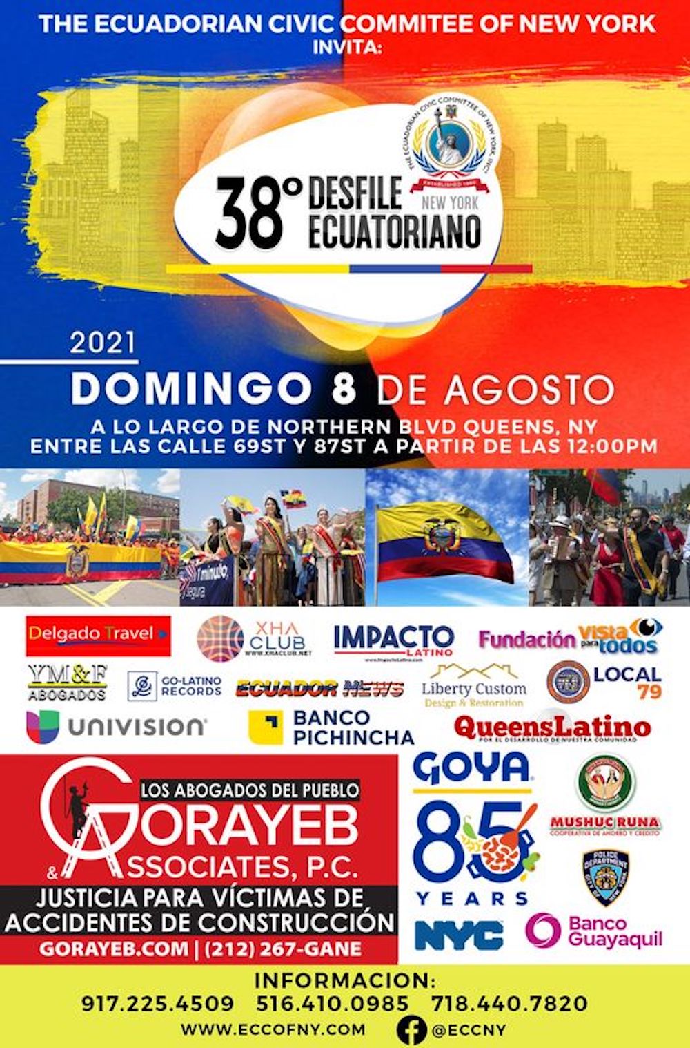 Todos los ecuatorianos y hermanos latinoamericanos que deseen participar, están invitados a registrarse en la sede del ECCOFNY para participar en el XXVI Desfile Ecuatoriano de Nueva York.