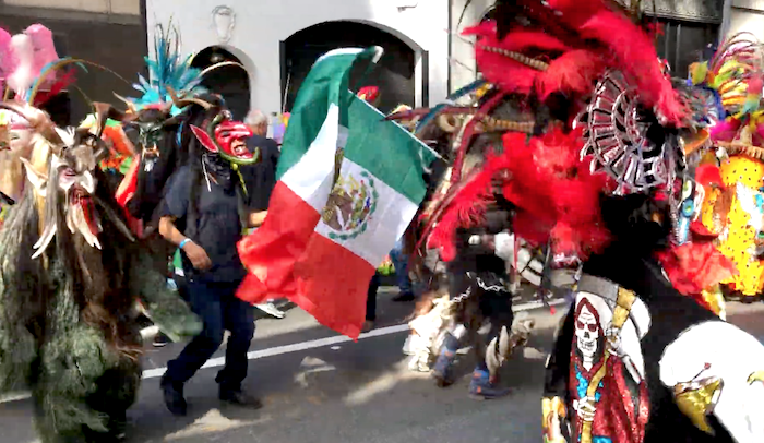 El cónsul general de México en esta ciudad, Jorge Islas López, no participó en el desfile. Algunos mexicanos exhibieron una pancarta exigiendo su renuncia.