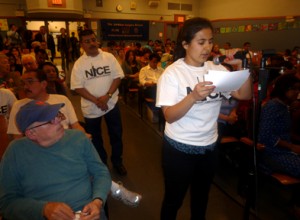 La delegación de Nice (New Immigrant Community Empowerment) fue la más numerosa y vistieron camisetas de la organización. Jesús Moreno preguntó por qué no se controla la renta y a los propietarios que abusan de los inmigrantes. Dijo que alguien tiene que “parar el hostigamiento de la policía y de la fiscalía”.