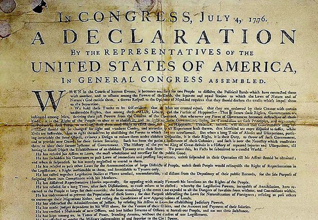 Primera página de la Declaración de Independencia en 1776.