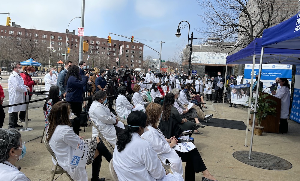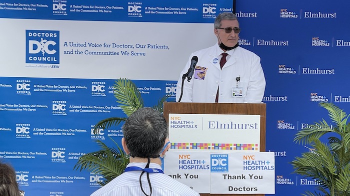 En medio de la pandemia, el Hospital Elmhurst de Queens decidió agradecer a los doctores que nunca abandonaros a los pacientes. “Pusieron el interés del paciente por encima de sus familias, se dedicaron a combatir el Coronavirus con pasión y dedicación”, dijo el doctor Frank Proscia, presidente del Council SEIU, sindicato que representa a los doctores. El 24 de marzo es el Día Nacional del Doctor.