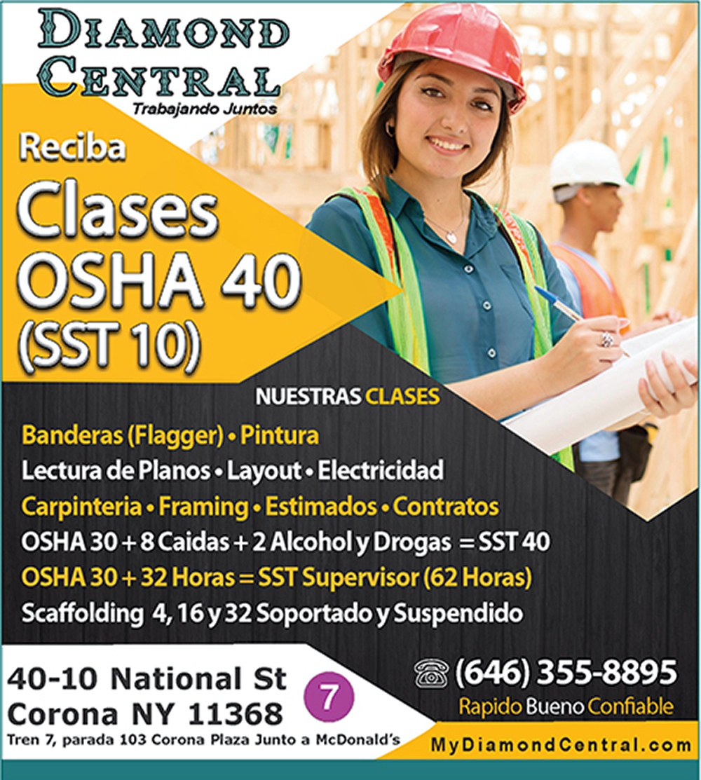 Para dictar clases de seguridad en la construcción (OSHA), la empresa Diamond Central inauguró su nueva sede en el 41-13 de National Street, a una cuadra de la estación de la calle 103 del tren 7, en Corona, Queens.
