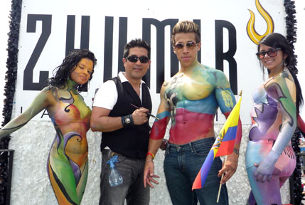 La presencia de Goya Foods, que celebra 75 años de existencia, también fue notoria, al igual que la empresa de licores Zhumir, que tenía en su carroza al pintor John García, quien dibujaba los cuerpos semidesnudos de dos mujeres y un hombre.