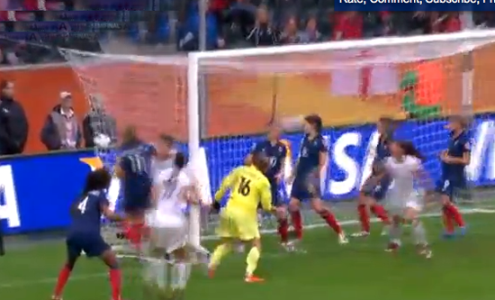 En el primer tiempo del partido, jugado en estadio del equipo Borussia de la ciudad de Moenchengladbach, Estados Unidos perdió otras dos claras oportunidades de gol, mientras Francia llegó a estrellar un disparo en el horizontal del arco defendido por la portera estaodunidense Hope Solo.