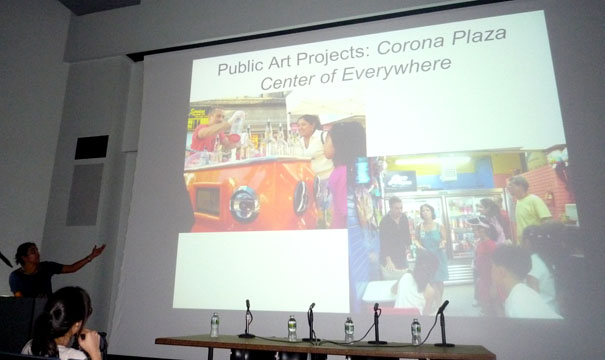 “El arte puede cambiar la realidad”, dijo Tania Bruguera de la organización Immigrant Movement International, con sede en Corona, Queens. Es un proyecto que nació de la necesidad del Museo de Arte de Queens de atraer y trabajar con la comunidad latina que rodea a esa institución. El debate se realizó en la faculta de Planificación Urbana de la Universidad de Columbia, en Manhattan.
