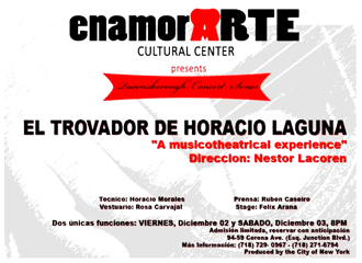 La obra se presenta el viernes y el sábado 2 y 3 de diciembre, a las 8 de la noche en EnamorArte, ubicado el 94-59 Corona Avenue, esquina con Junction Boulevard, en Corona, Queens.