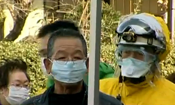 La autoridad de Japón mide los niveles de radiación en la gente.