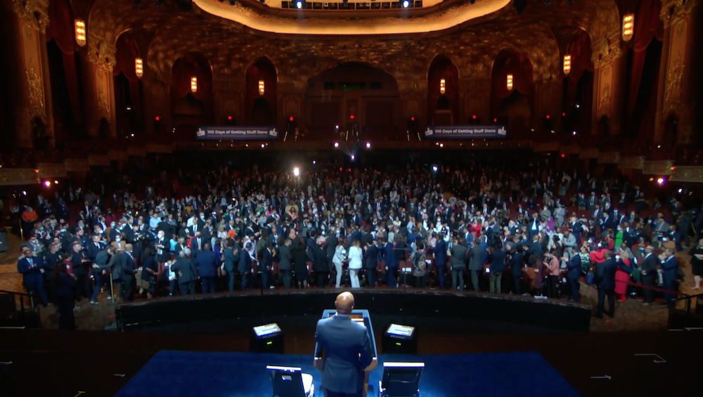 El alcalde Adams comenzó su discurso sobre los primero 100 días de su administración con un video sobre su infancia, una familia pobre de Queens que creció bajo el temor de perder su vivienda, una madre soltera y el abuso que sufrió de la policía el joven Eric hasta que se vinculó al Departamento de Policía de Nueva York para “sacarme los demonios”.