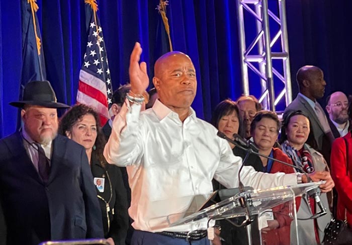 Adams trabajó en el Departamento de Policía de la ciudad de Nueva York por más de 20 años y llegó a ser capitán. Es un veterano de la política y en la actualidad es el presidente del condado de Brooklyn. No está de acuerdo con recortar el presupuesto de la policía y su campaña se enfocó en cómo combatirá el crimen.