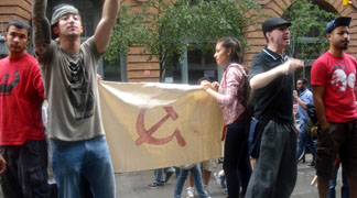 Con pancartas en mano, cerca de treinta estudiantes y activistas se pararon en frente del edificio de Baruch College en donde dieron discursos en contra de la junta directiva, la presencia policial en las diferentes universidades de CUNY, el capitalismo y los aumentos anuales de $300 que se harán a la matrícula por cinco años, aprobados el 2011.