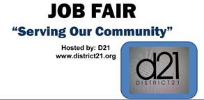 Varias empresas del área participarán en esta feria de trabajo. El slogan del Disctrict 21 es “Sirviendo a la comunidad”.