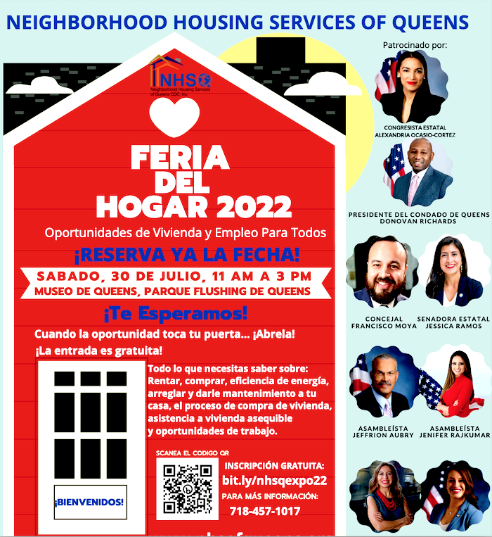 Joining NHS of Queens and our attendees will be representatives from the Queens Borough President’s Office, Congresswoman Alexandria Ocasio Cortez, NYS Senator Jessica Ramos, Council Member Francisco Moya, NYS Catalina Cruz, the NYC Department of Housing & Preservation Development and many more.