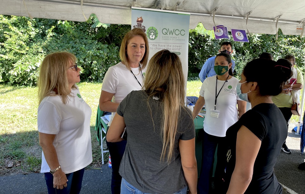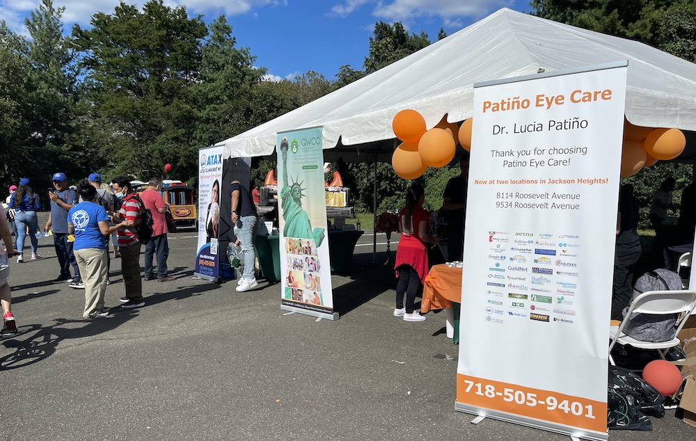 El kiosco donde se ubicó la Cámara de Comercio de Mujeres de Queens, ATAX y Patiño Eye Care, entre otras empresas.