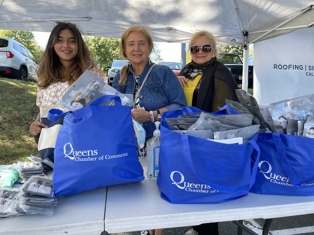 Representantes del departamento de asuntos comunitarios de la Cámara de Comercio de Queens, desde la izquierda, Tasneem Sultana, Jacqueline Donado y Sussy Martínez.