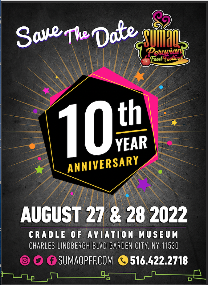 Después de una interrupción de dos años debido al Covid 19, el anual SUMAQ Peruvian Food Festival regresará el 27 y 28 de agosto al Museo Cradle of Aviation, en Garden City, New York para ofrecer una deslumbrante porción de la cultura peruana a los residentes triestatales.