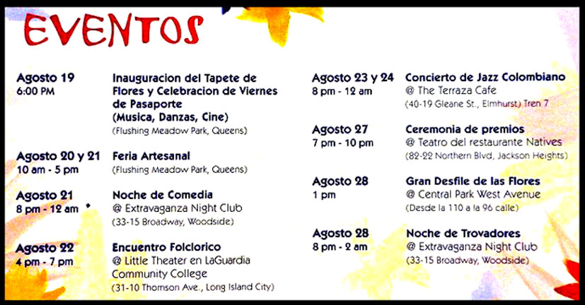 Esta es la programación que aparece en el cartel de promoción del Festival de las Flores New York.