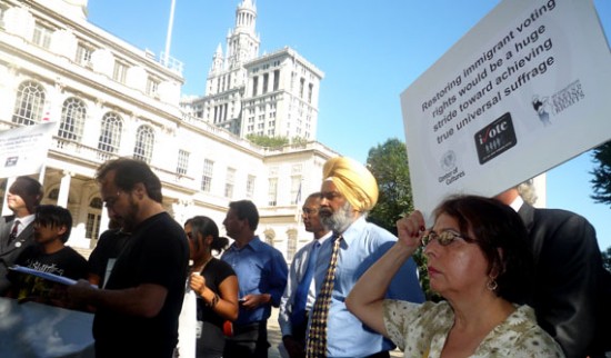 A coalition is holding a press conference Monday, November 1, to fight for the Voting Rights that give New York city legal residents the power to vote in municipal election. If approved, those with ‘green card’ can vote to elect Mayor, Councilmen, Public Advocate, etc. Immigrants communities will benefit from this and the city will be more democratic, inclusive.