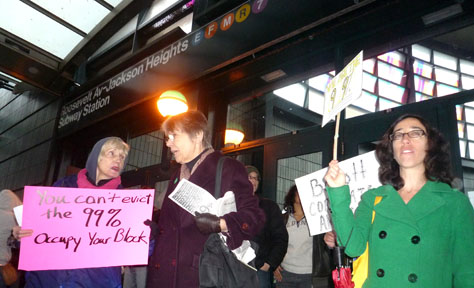 Desde las horas de la mañana, el movimiento Occupy Wall Street comenzó a llegar a las estaciones de los trenes para informar a la gente. En la estación de la avenida Roosevelt y la calle 74 no hubo más de 20 personas, la presencia latina fue mínima y pasaron casi inadvertidos. La policía estuvo allí presente, al igual que abogados que se desplazaron como voluntarios para observar los arrestos y defender los derechos de los esposados. Sin embargo, en Jackson Heights no hubo arrestos ni protestas.