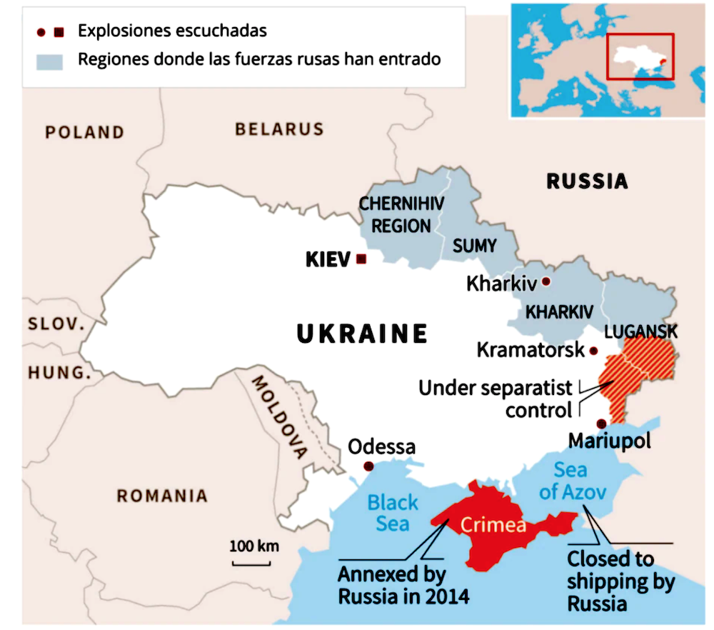 Tropas rusas invadieron este jueves zonas del este de Ucrania, generando la condena de la comunidad internacional. Bombas rusas dañaron varias ciudades y la gente comenzó a evacuar Ucrania con apoyo de tropas estadounidenses. La gente se está abasteciendo en los supermercados y llenando el tanque de gasolina de sus carros.