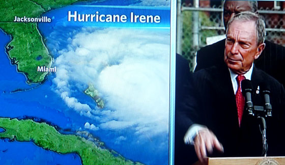 El huracán Irene golpeará la ciudad de Nueva York a las 8 de la mañana del domingo y estará arrojándonos viento y agua por varias horas. “Los problemas de la ciudad permanecerán hasta el lunes en la mañana y ojalá que no haya mayores problemas, pero debemos estar preparados para lo peor”, dijo el alcalde Bloomberg, quien ha realizado más de 10 conferencias de prensa en los dos últimos días para alertar a la ciudadanía sobre los riesgos de este huracán.