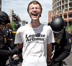 Decenas de personas fueron arrestadas en el estado de Arizona por protestar en contra de la nueva ley de inmigración y en la ciudad de Nueva York se realizó una demostración de apoyo que concluyó en el bajo Manhattan.