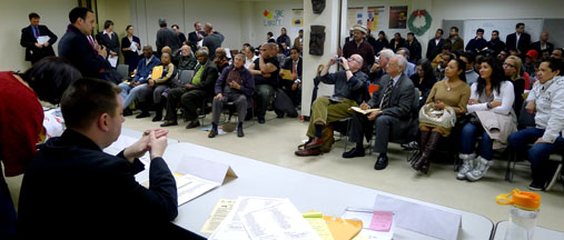 La reunión se hizo en el sótano de la biblioteca pública Langston Hughes de la calle 100 y Northern Boulevard.