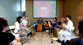 El Centro Cultural Latinoamericano de Queens realizó un concierto con el Quinteto de las Américas en el Jardín Botánico de Queens, en Flushing. Más de 100 personas acudieron al concierto de instrumentos de viento en su gran mayoría. En el fondo del salón se proyectaron imágenes de la naturaleza y de flores multicolores.