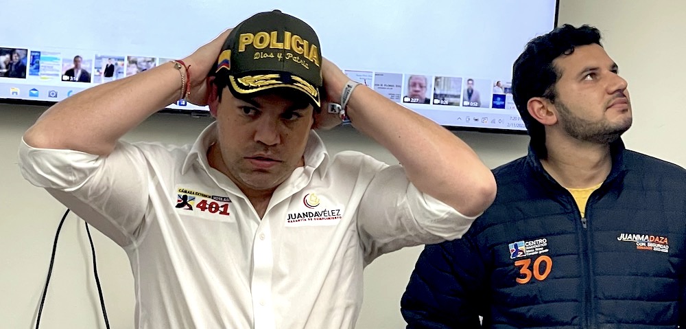 En estas elecciones está en juego la democracia y la libertar de Colombia e inclusive está en riesgo el ex presidente Alvaro Uribe porque si lo metieron a la cárcel ahora que controlamos el gobierno, ¿qué pasará si Petro llega a la presidencia”, dijo Juan David Vélez, quien busca ser reelegido como representante de los colombianos en el exterior (401).