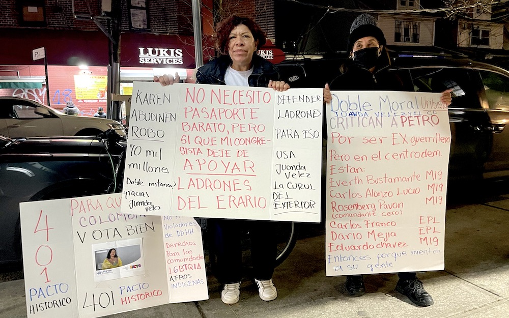 Vélez visitó Queens y se reunió con un grupo de 25 colombianos en la oficina de Jairo Jaimes, quien estaba de cumpleaños y le partieron torta. Hace cuatro años Vélez ganó sin debatir y porque usó en su campaña una foto al lado del ex presidente Uribe. Ahora reconoce que su mayor oponente es la candidata del Partido Político MIRA y por eso afirmó: “El MIRA ni los mira”. Luego añadió que “votar por el MIRA es votar por Claudia López”.