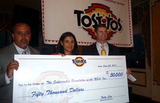 “Asistir a la universidad es parte del sueño americano y apoyamos a la NSA porque es parte vital del desarrollo de la comunidad”, dijo Jake Wenz, director de ventas de Frito Lay/Pepsico., y quien entregó un cheque de 50,000 dólares a esta organización de supermercados latinos.