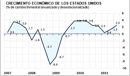 El crecimiento económico en Estados Unidos fue más lento de lo estimado en julio, agosto y septiembre, el tercer trimestre de 2011.
